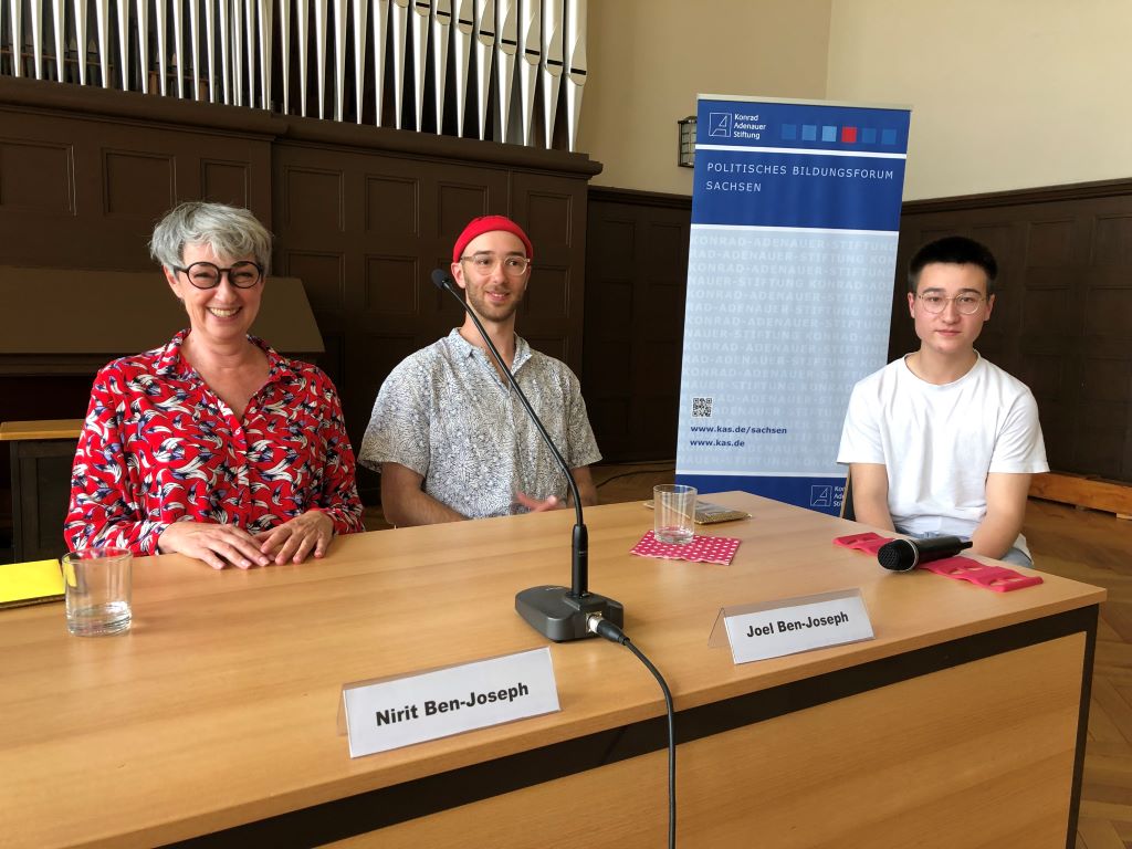 Am 11. Mai 2022 bot sich den Schülerinnen und Schülern der 11. Klassen eine besondere Chance: Nirit Ben-Joseph und ihren Sohn Joel waren zu Gast bei Schule im Dialog. Wir begrüßten auch Frau Büchel, stellvertretend für die Konrad-Adenauer-Stiftung in Dresden.