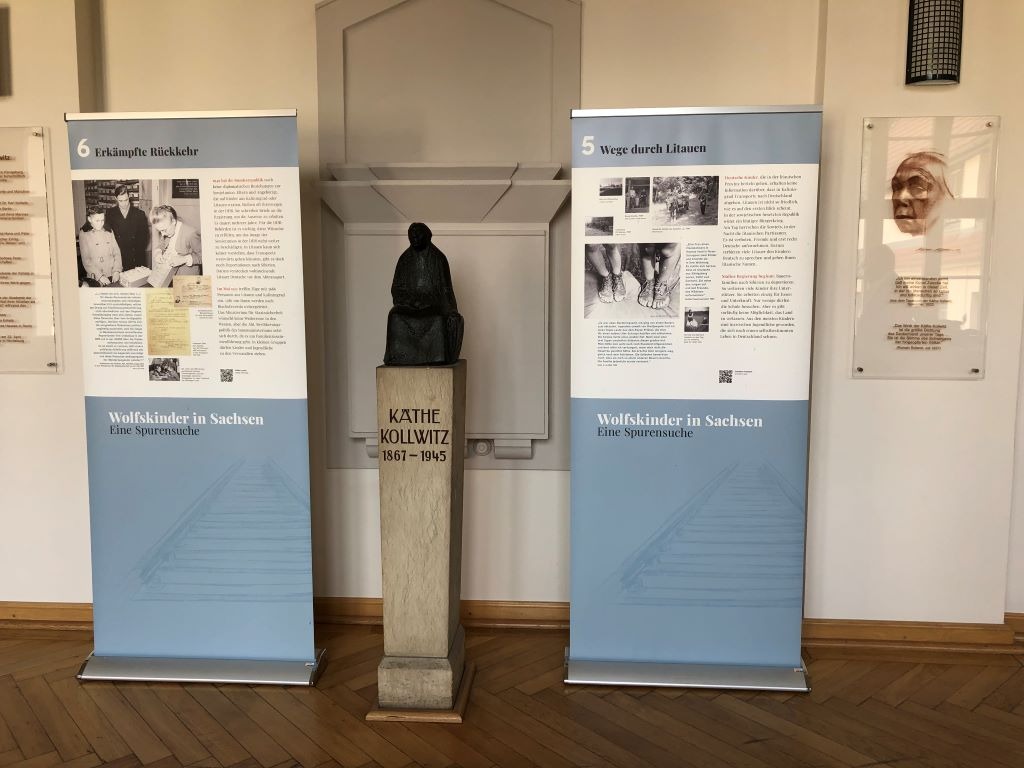 In Litauen, unweit von Tilsit, steht ein Denkmal für die „Wolfskinder“ – direkt an einer Straßenkreuzung. Der Verein „Wolfskinder“ trägt die Geschichten und Schicksale der Kinder zusammen – und holt sie aus der Vergessenheit, z. B. mit dieser Ausstellung. Dazu gehört auch, wie manche Kinder nach Deutschland, in diesem Falle nach Sachsen kamen, wie und wo sie nach monatelangem Irrweg Aufnahme fanden. Die Schuld der Deutschen war gewaltig, der Zweite Weltkrieg wirft lange Schatten – auch auf die ostpreußischen Kinder.