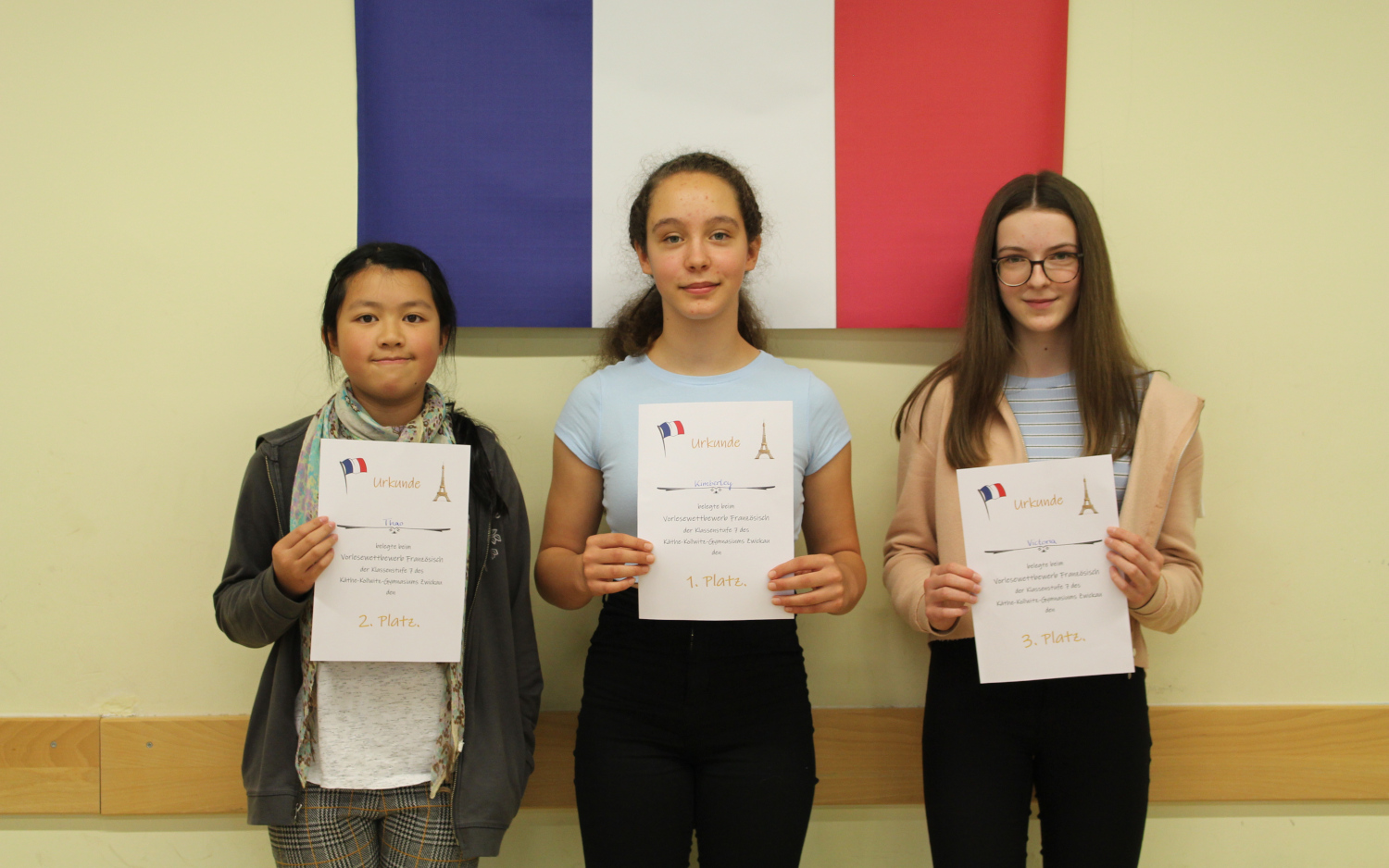 Am 8. Juli 2021 fand der Vorlesewettbewerb des Faches Französisch des Käthe-Kollwitz-Gymnasiums statt. Unter allen 7. Klassen, die Französisch lernen, wurden im Vorfeld die beiden besten Leserinnen und Leser ermittelt und erhielten eine Einladung zum Endausscheid.