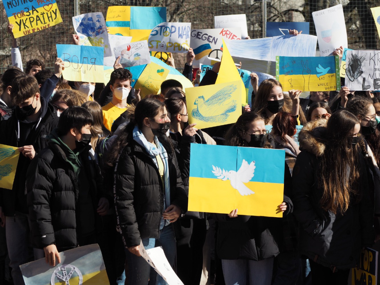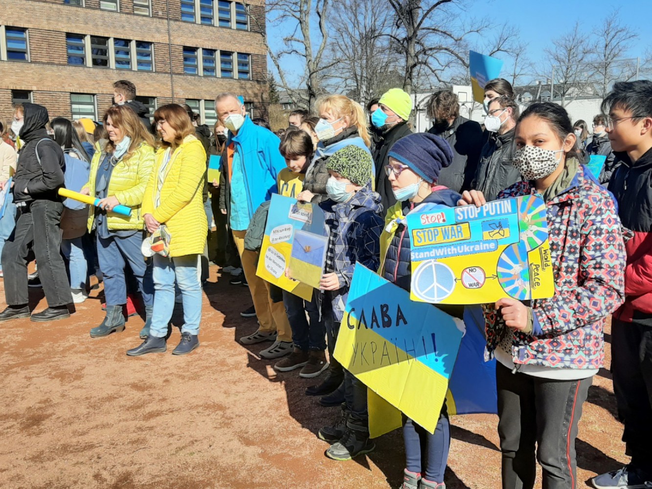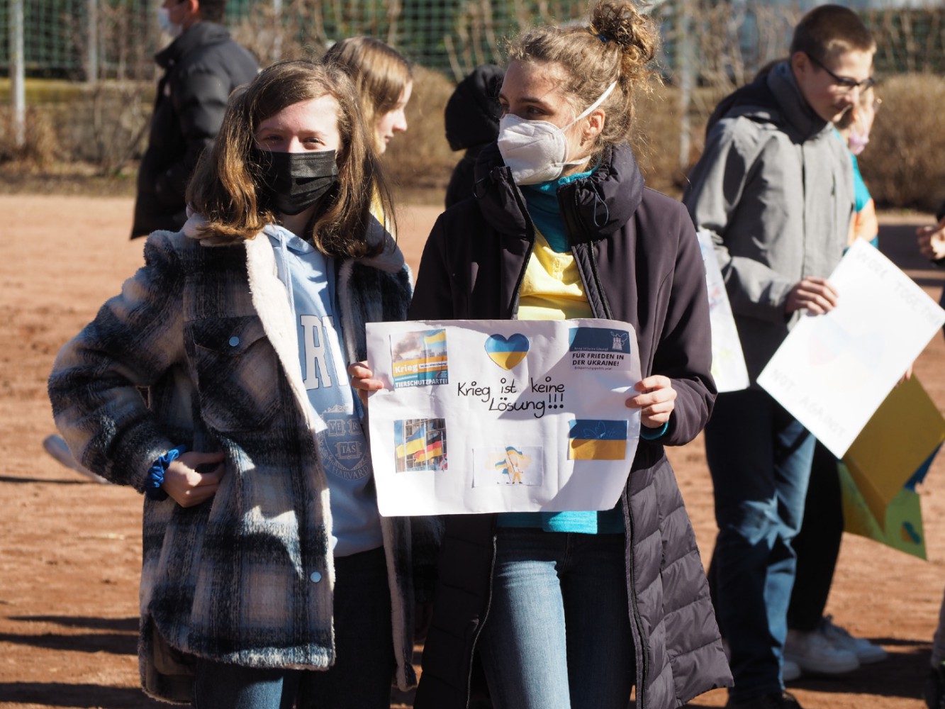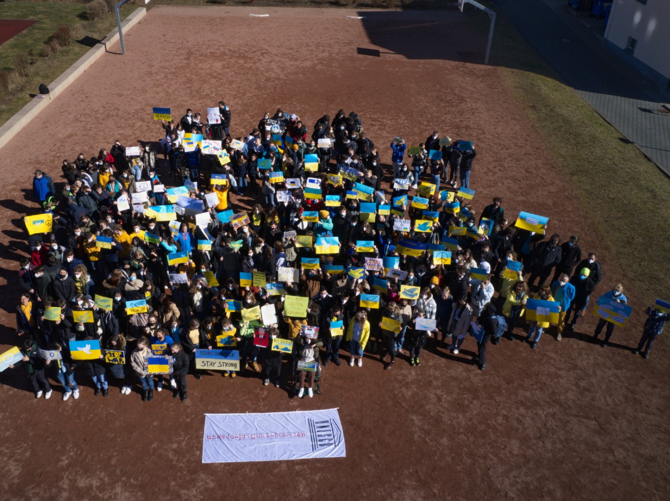 Angesprochen wurde ebenfalls die Frage, was wir tun können, um Geflüchteten zu helfen. Herr Ballmann und Frau Preussler warben um rege Teilnahme an den Spendenaktionen wie z. B. Parkour und Kunstbasar, die in den nächsten Tagen in unserer Schule stattfinden. Mit den Spendengeldern möchten wir die Menschen aus der Ukraine unterstützen und unsere Solidarität zeigen.