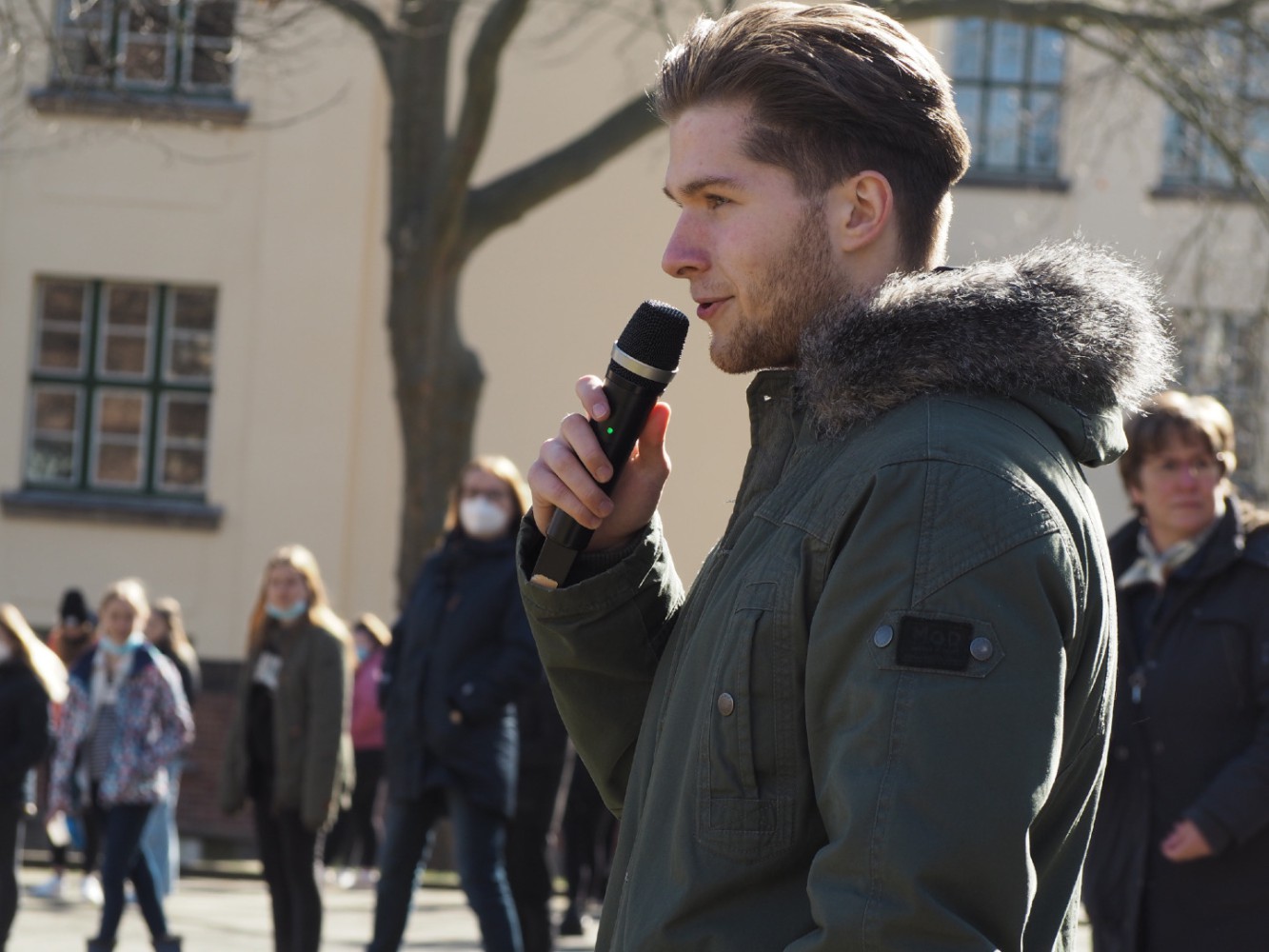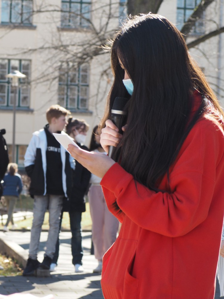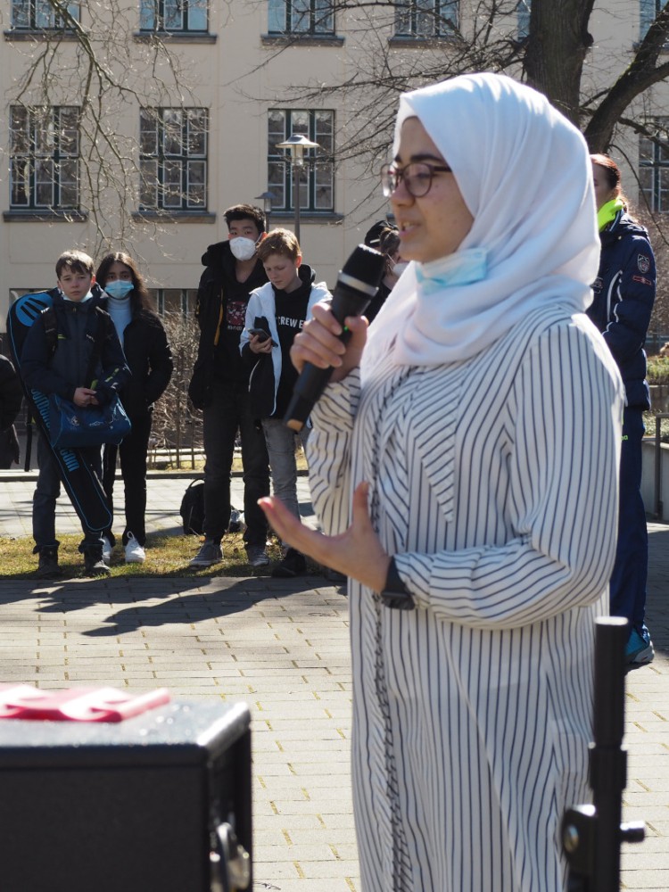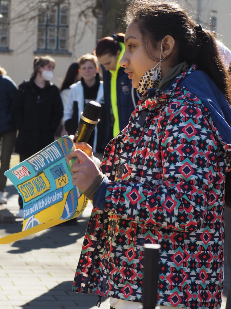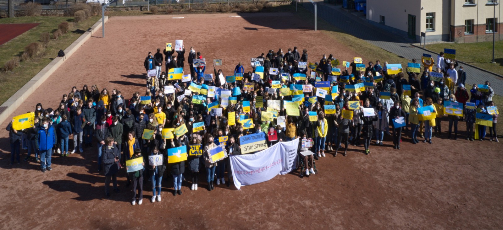 Angesprochen wurde ebenfalls die Frage, was wir tun können, um Geflüchteten zu helfen. Herr Ballmann und Frau Preussler warben um rege Teilnahme an den Spendenaktionen wie z. B. Parkour und Kunstbasar, die in den nächsten Tagen in unserer Schule stattfinden. Mit den Spendengeldern möchten wir die Menschen aus der Ukraine unterstützen und unsere Solidarität zeigen.