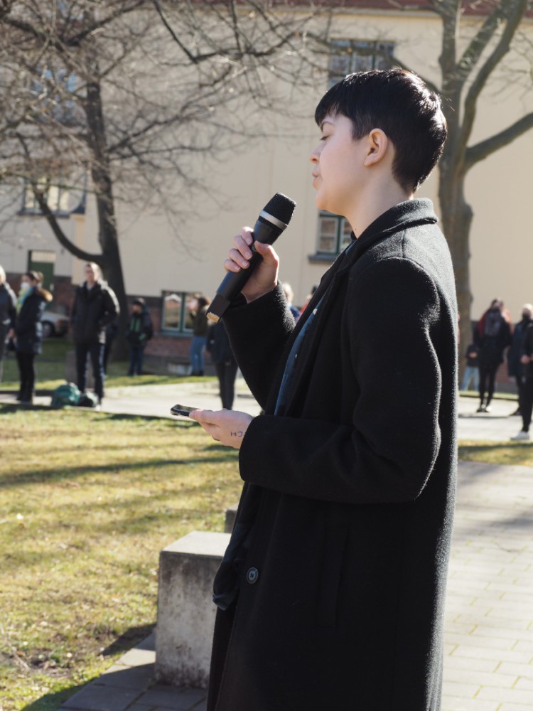 Beeindruckt verfolgten die Teilnehmer die ergreifenden Worte von Arina, Fatima, Farzana, Alex, Dania und Alexandr sowohl in deutscher als auch in ihrer jeweiligen Muttersprache.