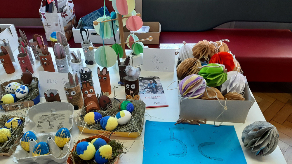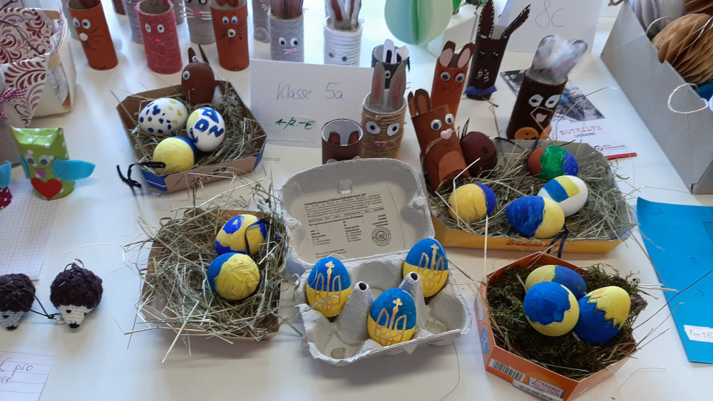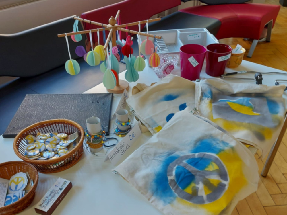 Nachdem zahlreiche Schülerinnen und Schüler bereits am 08.03.22 „Farbe bekannt“ hatten, fand nun am 21.03. und 22.03.22 der Kunst- und Frühlingsmarkt an unserer Schule statt. Mithilfe des Basars wurden Spenden für die Ukraine gesammelt.
