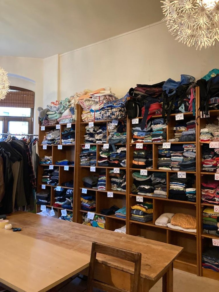 Mit viel Spaß arbeiteten wir daran, besonders für Kleinkinderbekleidung die passenden Regalfächer zu finden. Manchmal war die Zuordnung etwas schwierig, weil Größenschilder fehlten. Jedoch hatten wir dafür eine Expertin aus unserer Klasse, die wegen ihrer vielen kleinen Geschwister gut abschätzen konnte, welche Größe gesucht war.