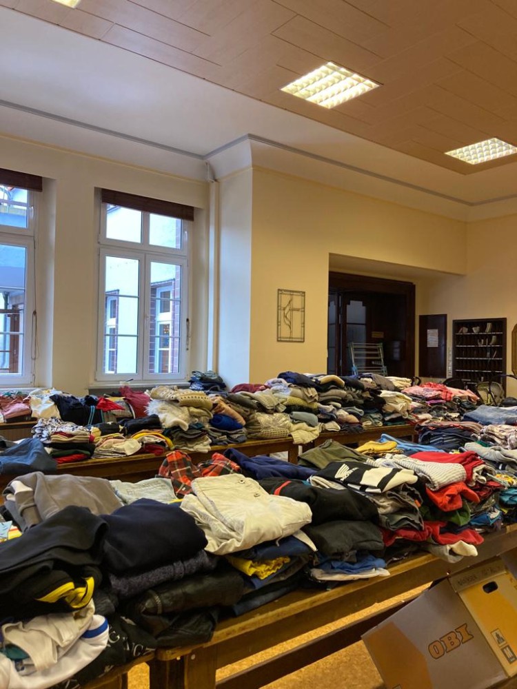 Der Krieg in der Ukraine geht auch uns etwas an. Deshalb wollten wir, Schüler und Schülerinnen der Klasse 10a zusammen mit unserer Klassenlehrerin, am Dienstag, dem 29.03.2022, in der Kleiderkammer der Moritzkirche helfen. Wir sortierten gespendete Sachen wie Kleidung, Bettwäsche und Spielzeug für Flüchtlinge aus der Ukraine.